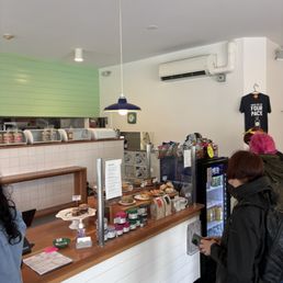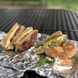 I came here on a nice and warm Saturday morning with a group of friends. The shop had a cute vibe to it, but seating was a bit limited. While it wasn't completely packed, it was still tricky to find a spot to sit. One thing I found really cool was the side window where you could order and pick up, perfect if you're on the move. The staff was kind and attentive. And there's a self-serve water station, which was a nice touch as well. I went for the GOAT breakfast sandwich with a jalapeno corn English muffin. It had an egg with spicy pesto and goat cheese. Initially, I didn't expect much because this shop is kind of tucket away from the rest of Union Square, but this was honestly a very good breakfast sandwich. It offered a really unique flavor profile compared to a typical bacon, egg, and cheese. My spice tolerance is pretty good, so I didn't find it unbearable, but I didn't appreciate the small kick that the sandwich had. Overall, it's a great spot for a quicker breakfast/brunch if you don't want to do a sit down experience. I would definitely come here again to try out some more items.